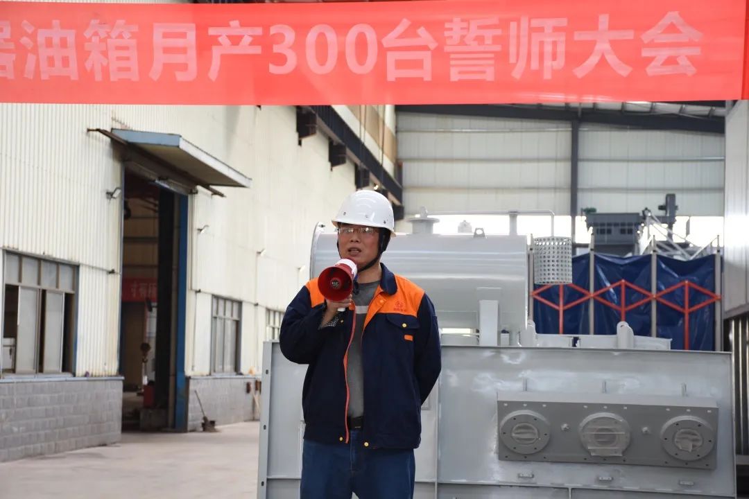 今天的宣誓在我們每個人的心中種下一個火種,將我們全體朝陽人團結一心、齊心協力、精益求精,不斷創新,不斷突破,服務好客戶,提升好自身。以做好明陽電器月供300臺變壓器油箱為起點,攻艱克難,持續追求卓越,不斷超越自我,做出一個客戶滿意、員工幸福、茁壯成長般“驕陽似火”的朝陽集團。